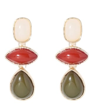 Elevate your look with the imogen stone drop earrings from Forever New. These bold and artsy earrings feature a stunning three tiered design with shimmering stones set in a gold tone setting. The post back fastening makes them easy to wear for pierced ears. Make a statement and stand out with these stylish earrings that are sure to add a touch of glamour to any outfit. Upgrade your accessory game with these eye catching imogen stone drop earrings.