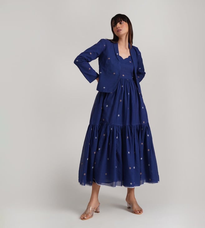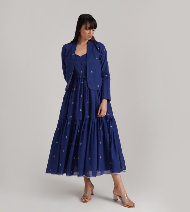 Indigo Dreams Blue Vintage Weaves Cleopatra Dress with Jacket