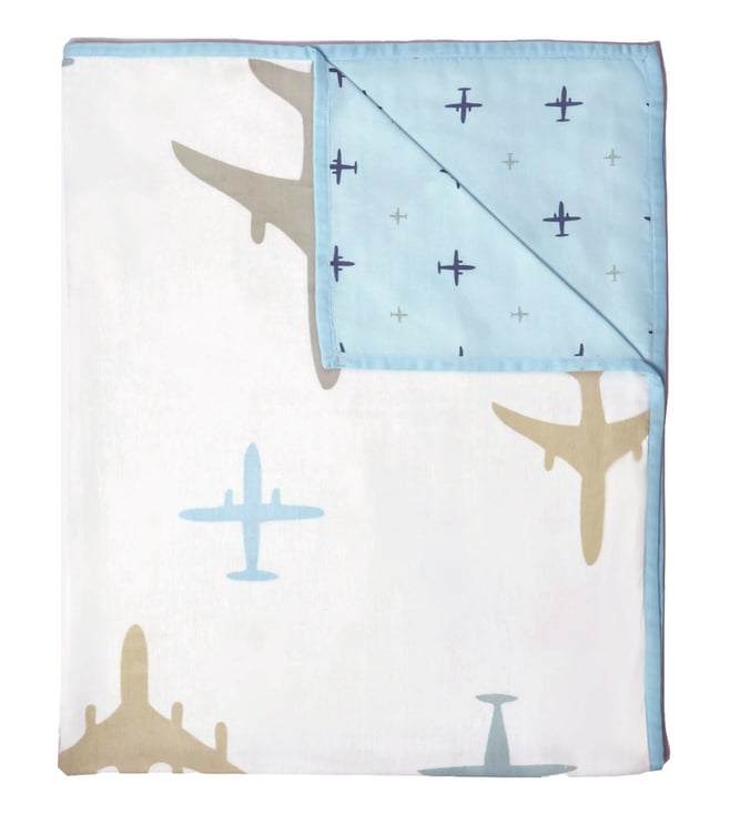 OrganicCotton Cot Bedding Set For Baby's Nursery Decor Luxury Gift Hamper Pack of 7-Star-Blue