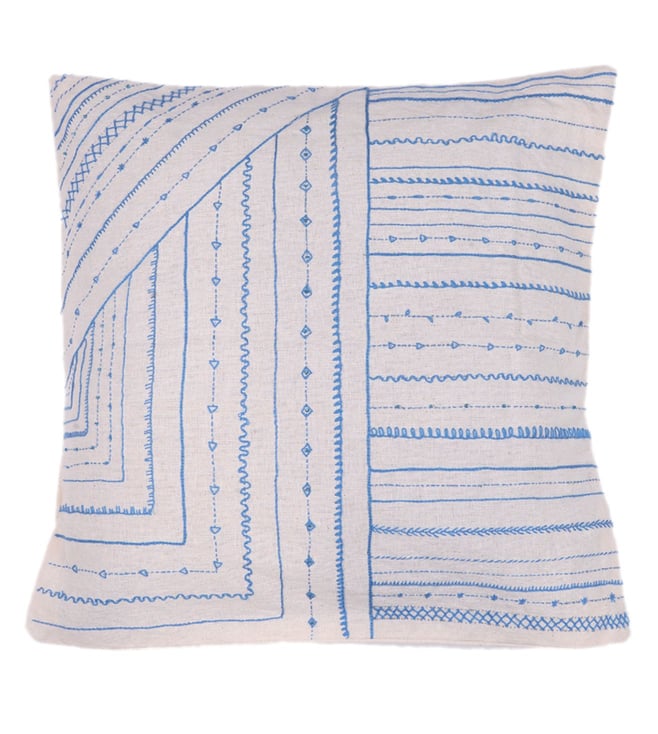 Blue Synchrony Hand Embroidered Applique Cotton 16" X 16" Cushion Cover