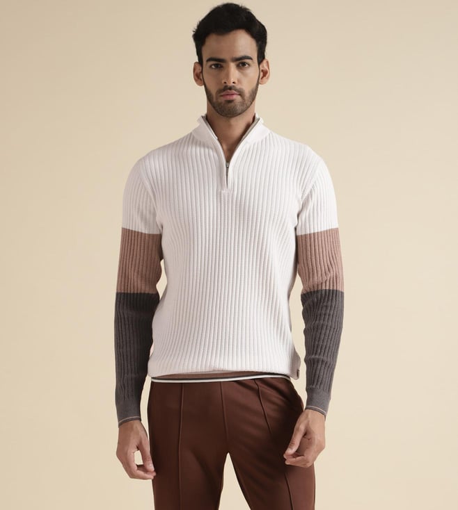 Art of Leisure Structure Brown Men's Full Sleeve Polo Sweater