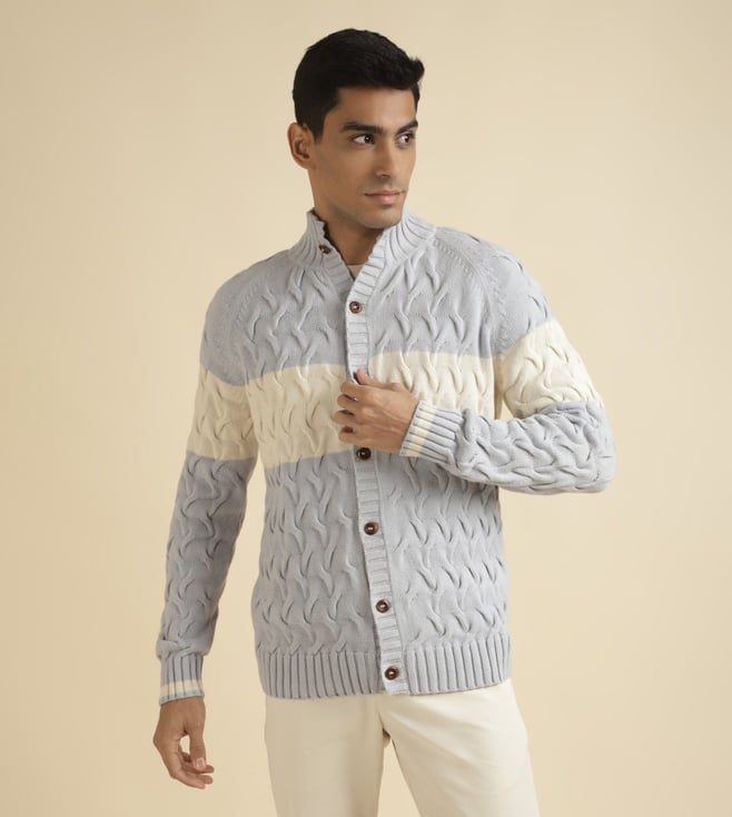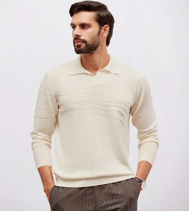 Art of Leisure Structure Blue Men's Full Sleeve Polo Sweater