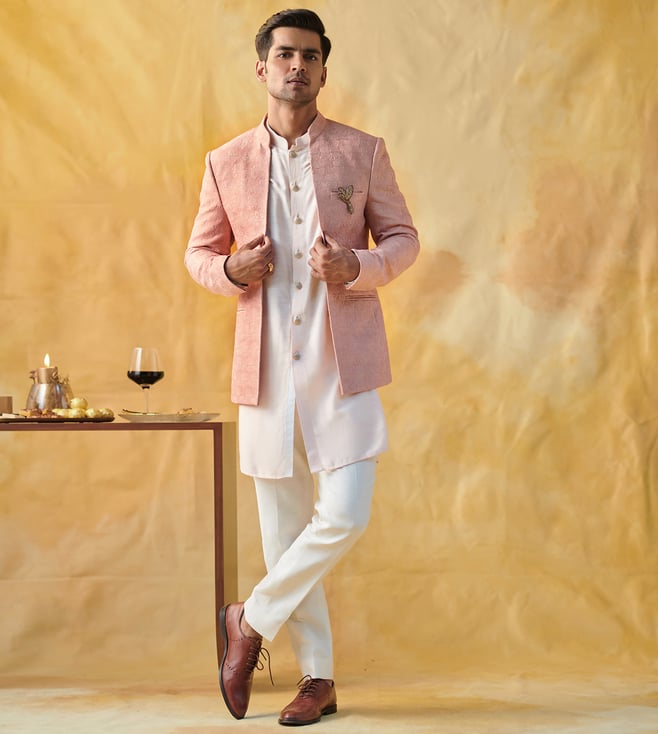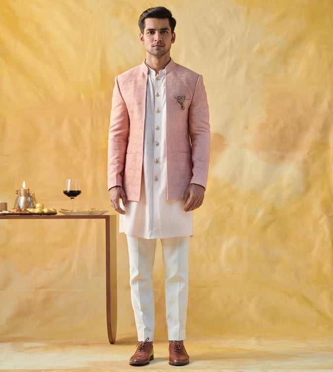 Powder peach dandelion textured open bandhgala