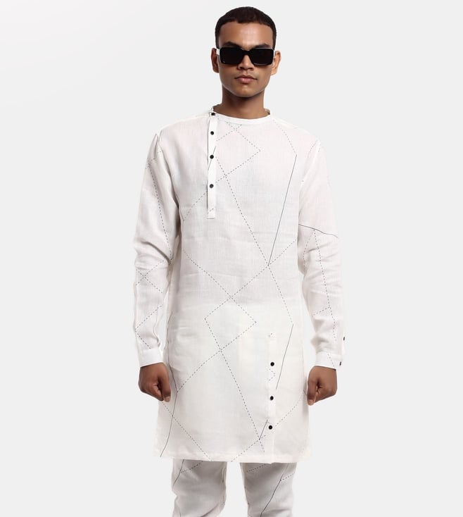 Off-White Heritage Men Pathani Indian Silhouette Kurta