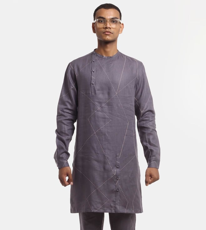 Men's Charcoal Grey Mandarin Collar Kurta