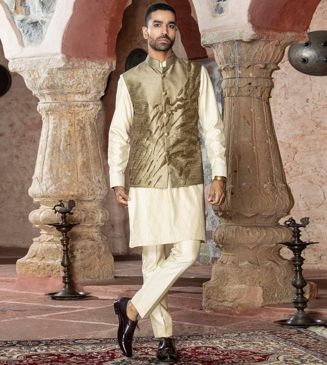 Yellow Silk Relaxed Embroidery Nehru Jacket