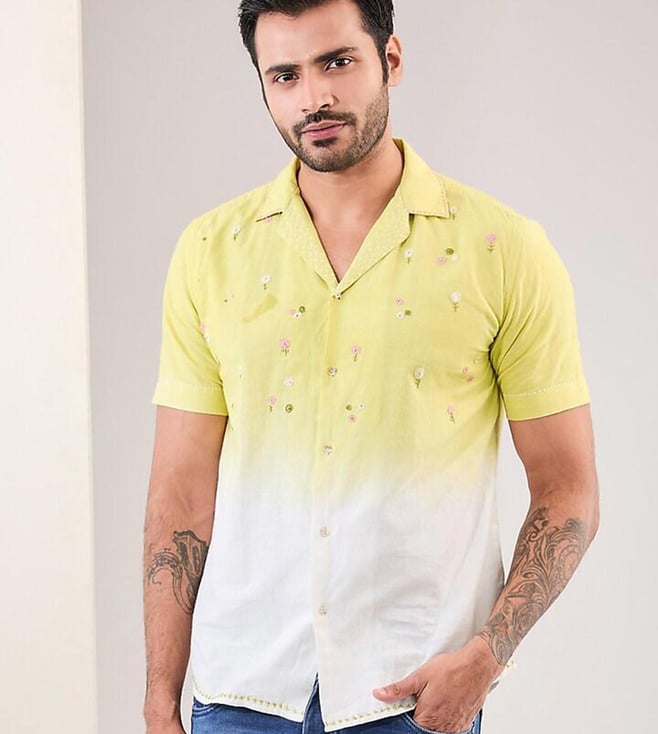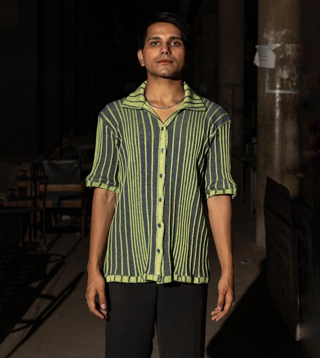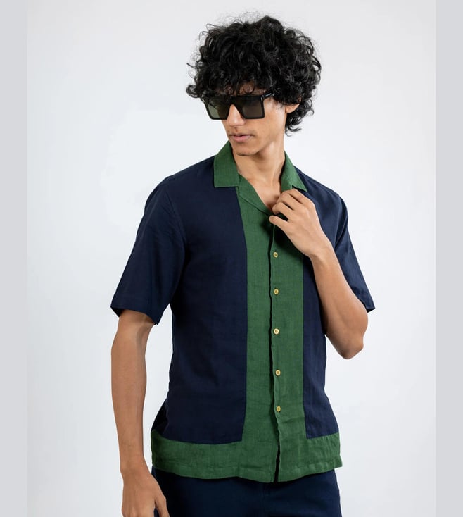 Nidal Olive Green - Organic Cotton Tencel Printed Half Sleeves Shirt
