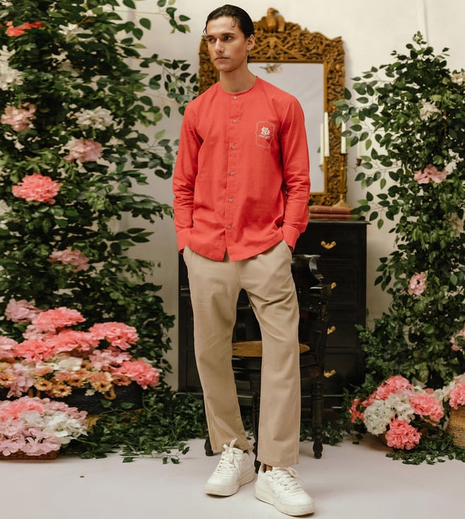 Brown Jilibi Rustic Rhapsody Handblockprinted Pure Cotton Shirt