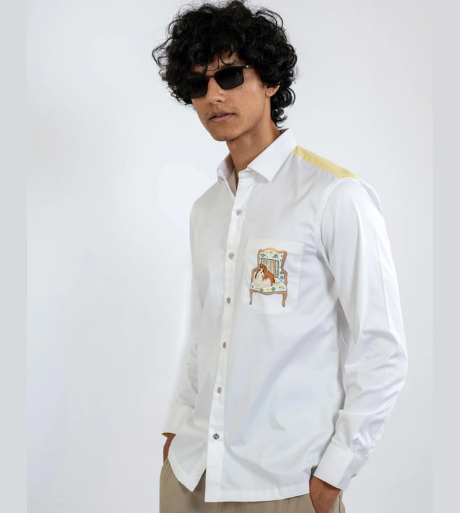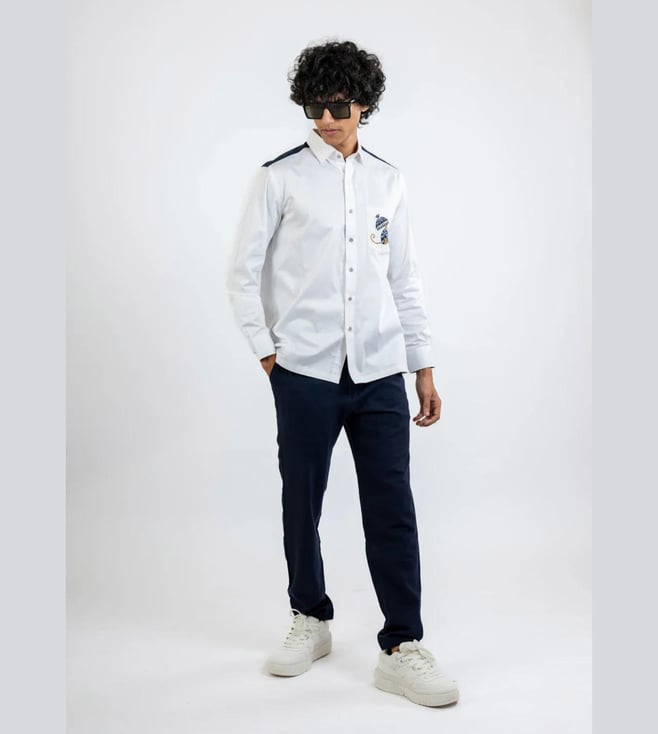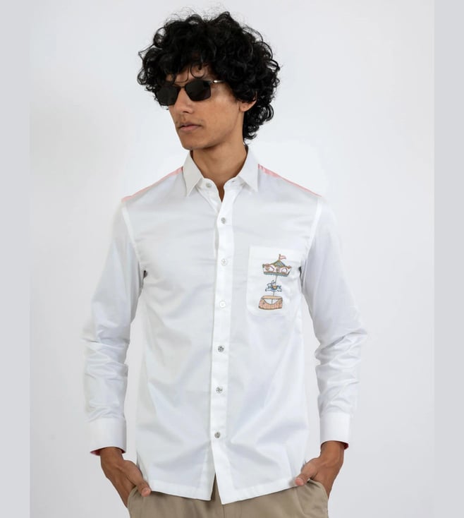 White & Purple Cotton Comfort Fit Printed Shirt