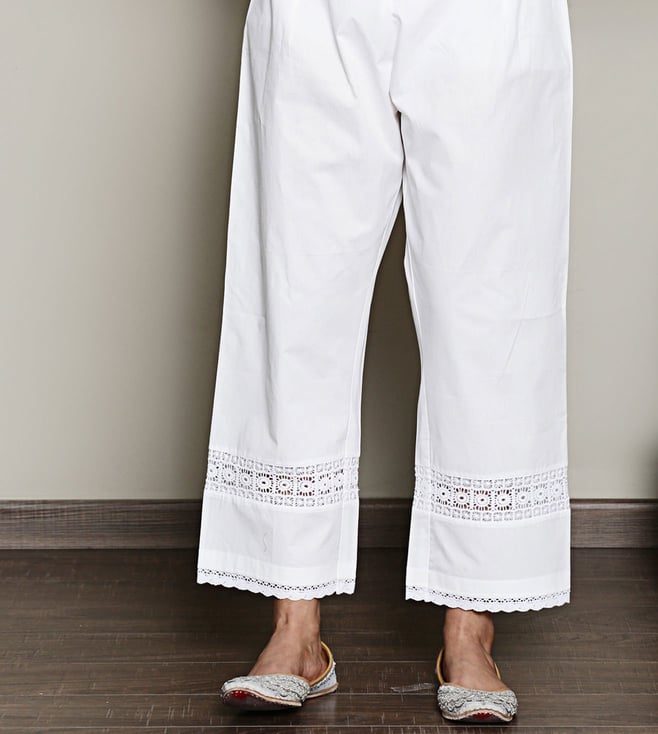Gold Earth Palazzo with Pin Tucks and Embroidery At Hemline