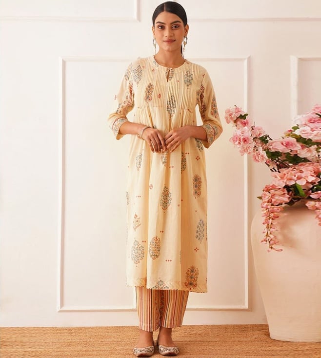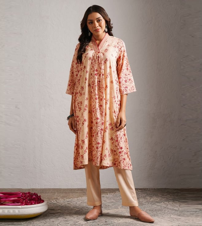 Beige HOC Crafts Aari Embroidered Woollen Solid Women's Long Kurta