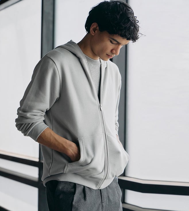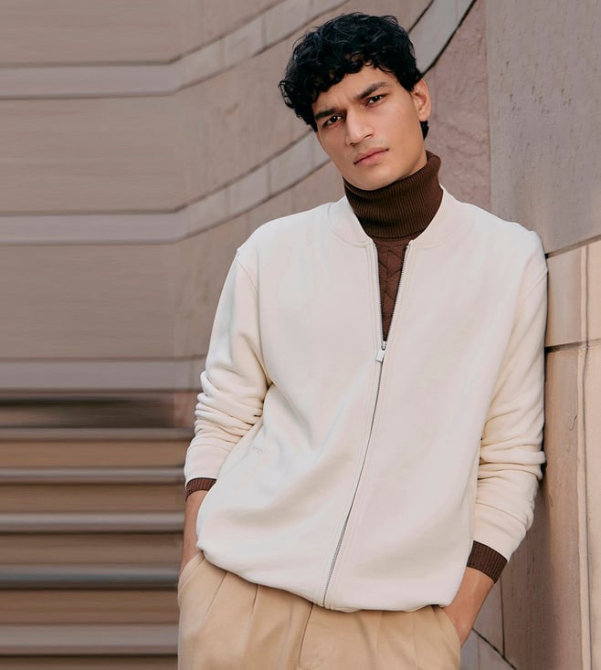Off-White Pocket Detail Cotton Triblend Circular Knit Relaxed Jacket