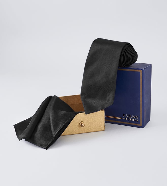 Black Pure Silk Necktie and Pocket Square Set