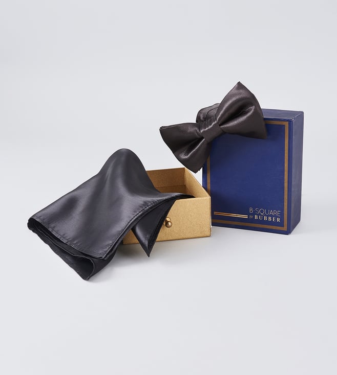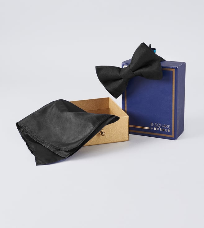 Black Pure Silk Bowtie and Pocket Square Set