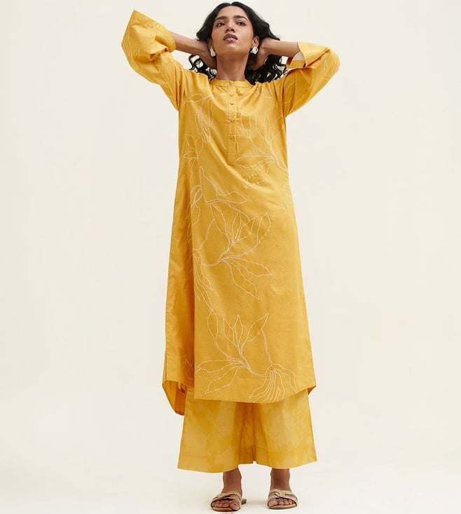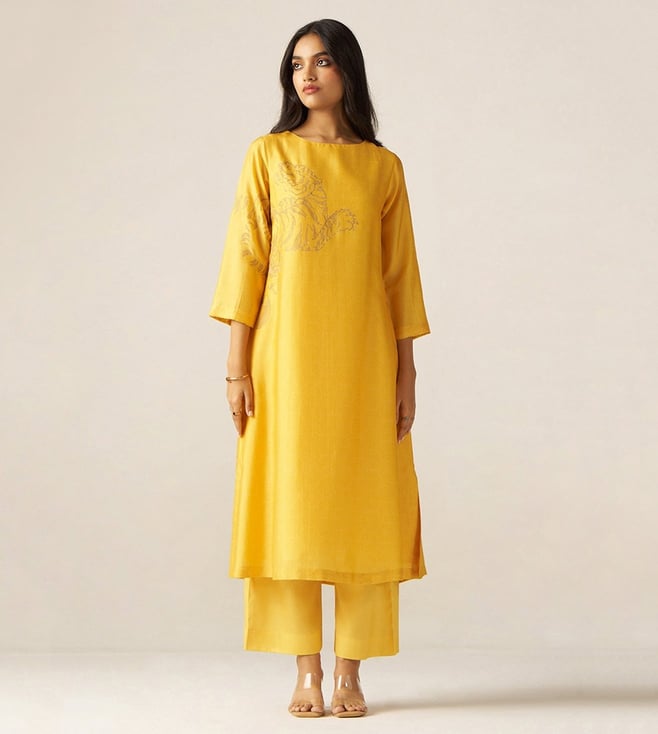 Cress Green Essence Chanderi Banjara Embroidery Kurta and Pant Co-ord Set