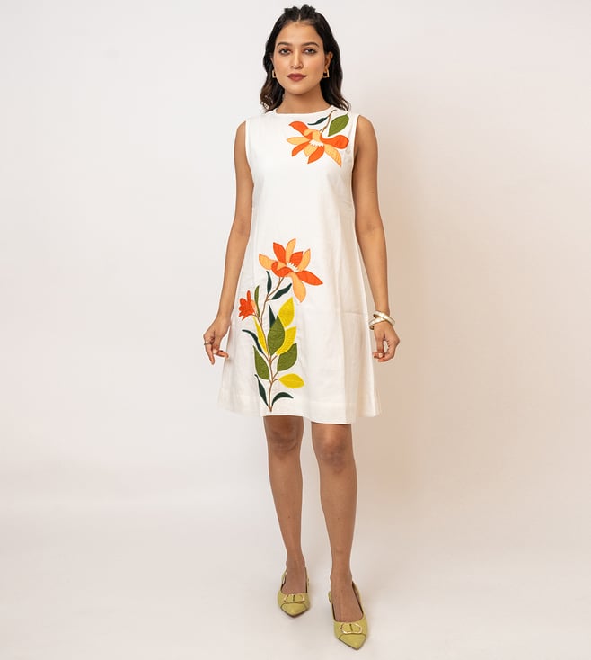 Women's Imara White Handcrafted Cotton Dress