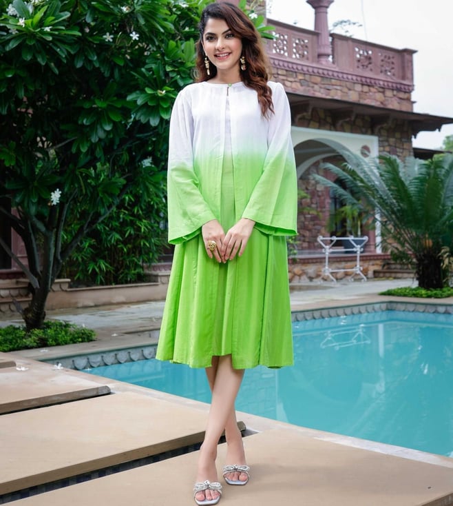 Women's White Ombre Handcrafted Cotton Dress