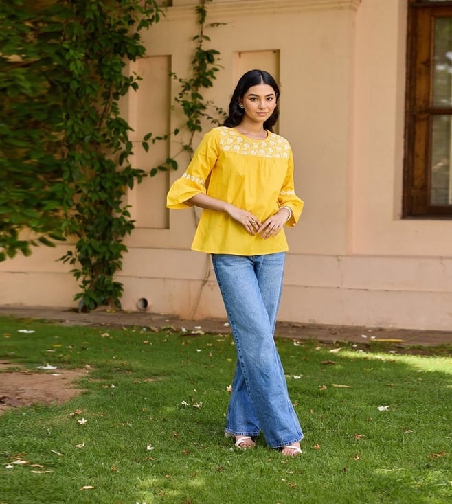 Snow White Elevated Basics V-neck Tunic with Embroidery