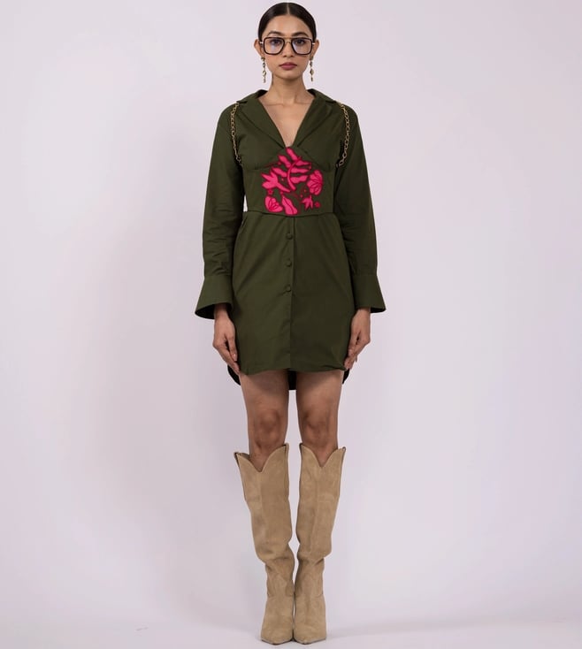 Beige, Tan & Orange Reese Buckle Shirt Dress