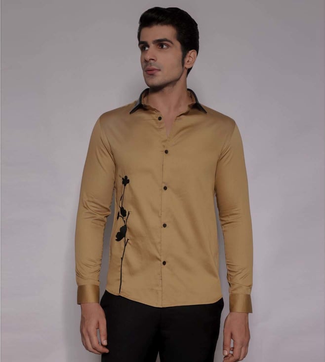 Tan Tailored Fit Printed Shirt