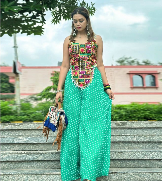 Forest Green Georgette Crop Top and Draped Skirt Co-ord Set