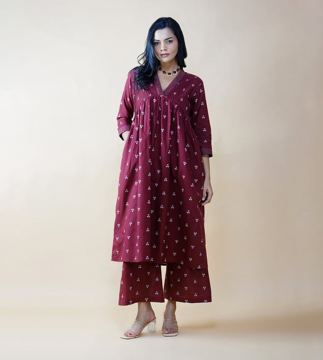 Maroon Cotton Printed 3/4Th Sleeve Suit Set