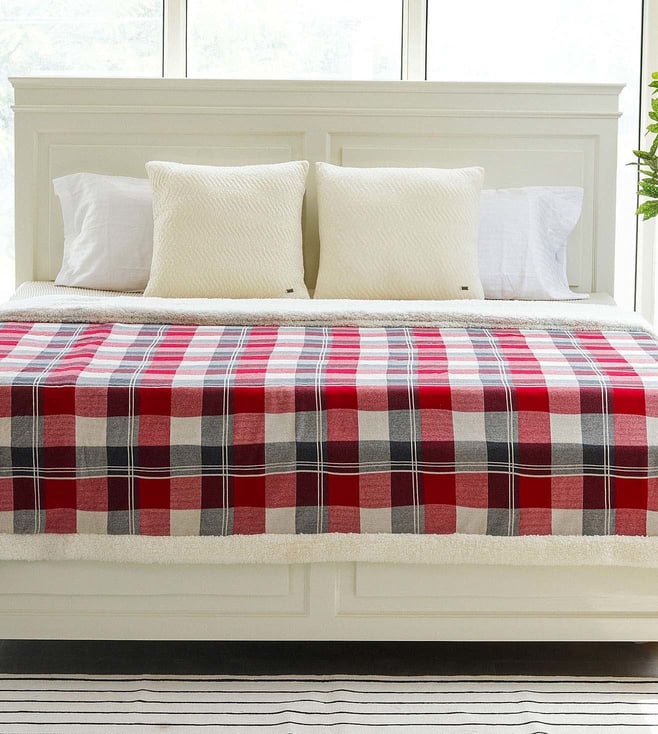 Azzo-Red, Double Bed Front Cotton Knitted With Sherpa Back Blanket