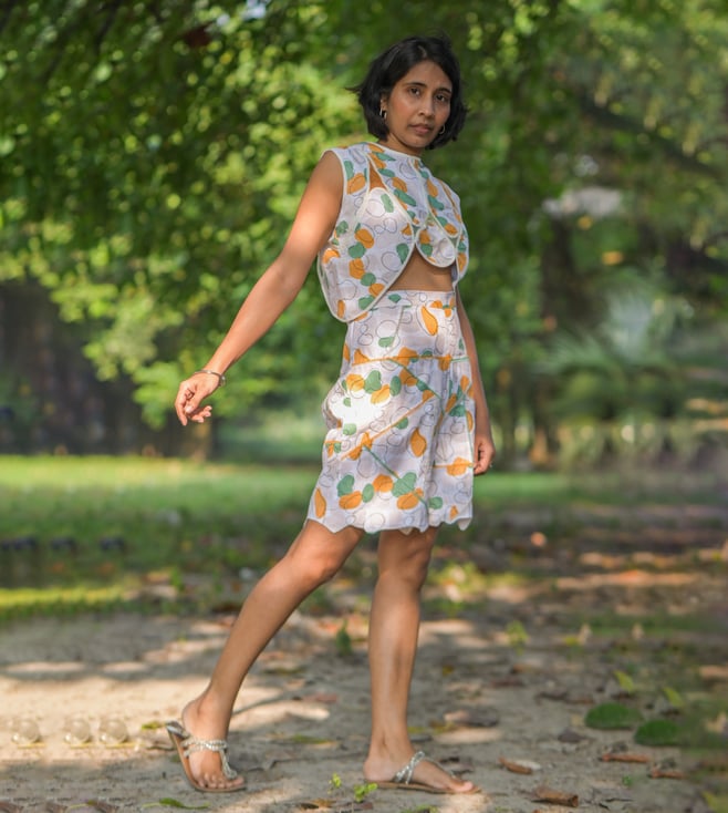 Sky Blue, Orange & Mustard The Shambhala Jalpari Sleeveless Crop Top With High Waist Pants