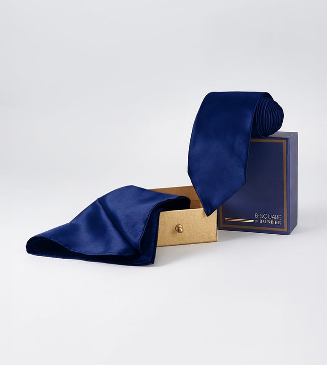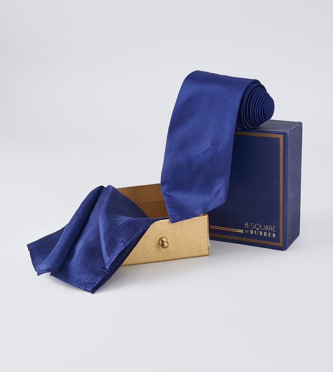 Blue Pure Silk Necktie and Pocket Square Set