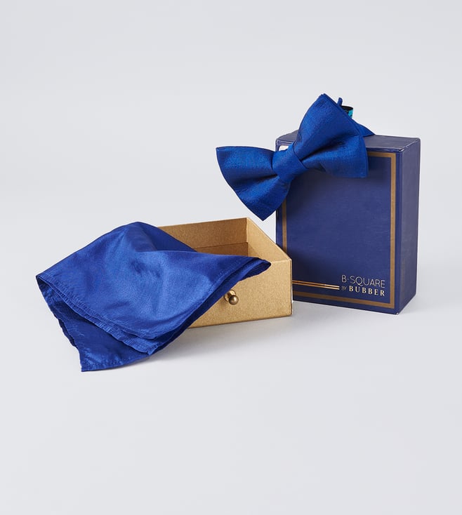 Blue Pure Silk Bowtie and Pocket Square Set