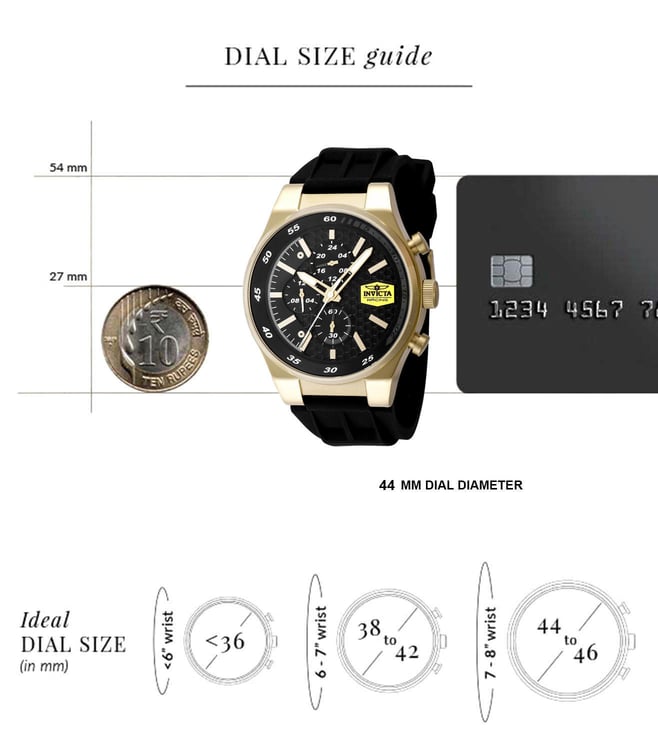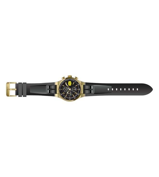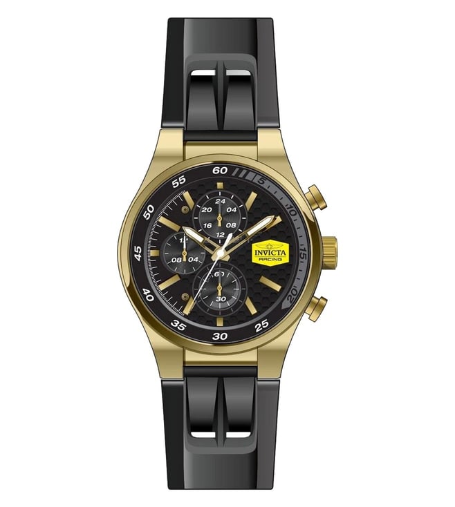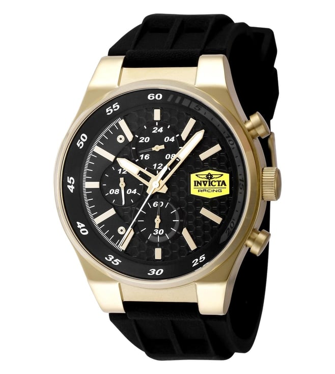 The INVICTA 48875 model is part of the INVICTA racing collection, this watch comes with a 44 mm gold case, black dial protected by mineral crystal, powered by a quartz movement completed by a silicone band. Water resistant up to 50 meters, protected by INVICTA 2-year warranty