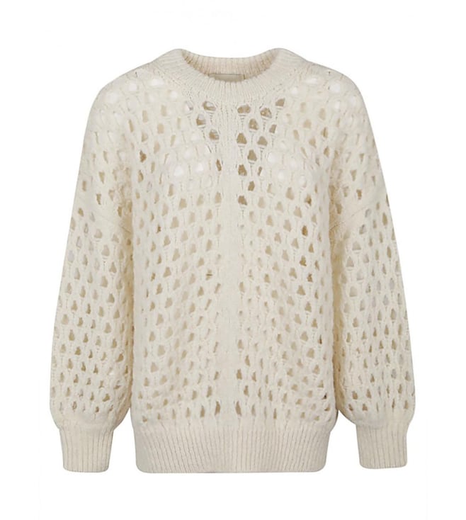 Wrap yourself in the luxurious embrace of the Isabel Marant Natural Oversized Jumper, a masterpiece of cozy elegance. This exquisite piece, crafted from a sumptuous blend of 84% Alpaca, 8% Polyamide, and 8% Wool, offers unparalleled warmth and softness. Its captivating color and intricate pattern weave a tale of sophistication, while the relaxed silhouette ensures effortless style. Designed for the modern woman, this jumper features a seamless closure, making it a timeless addition to any wardrobe.