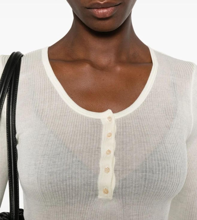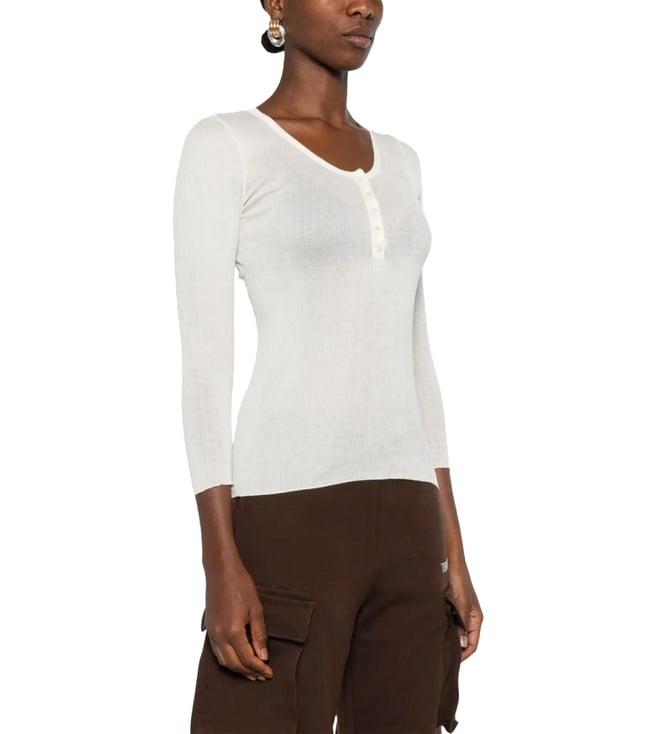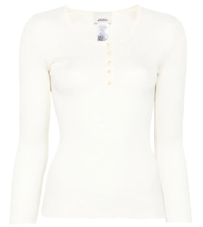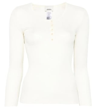The Isabel Marant White Lamylic Henley Top is a chic embodiment of effortless elegance. Crafted from 100% cotton, this top offers a regular fit that drapes beautifully, ensuring comfort and style. Its pristine white hue exudes timeless sophistication, while the subtle pattern adds a touch of modern flair. Designed for women who appreciate understated luxury, the top features a classic Henley closure, making it a versatile addition to any wardrobe, perfect for both casual outings and refined gatherings.