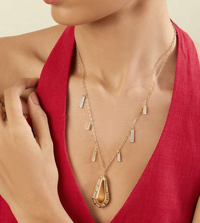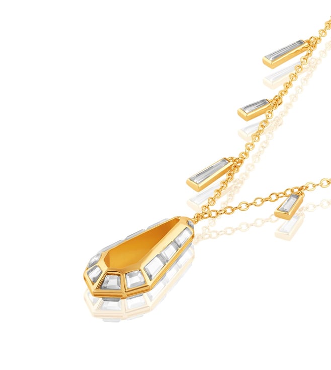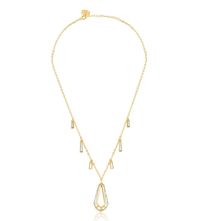 Make a statement with this gold-and-white necklace, featuring hand-cut mirrors and Portuguese-inspired filigree. Crafted in hypoallergenic brass with 18k gold plating, it¿s perfect for weddings, parties, and festive nights. Elevate your style¿shop Isharya now.