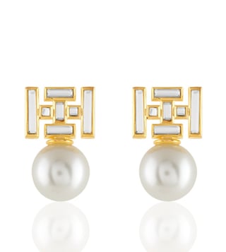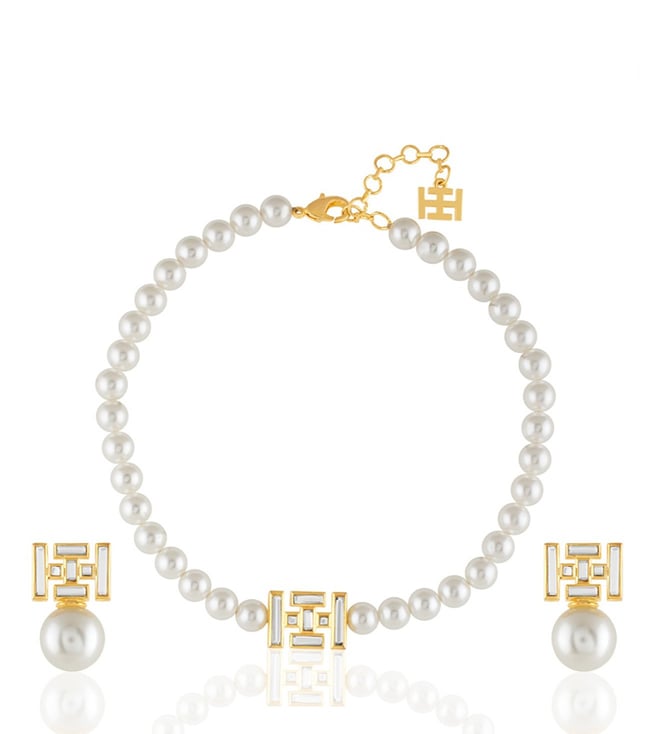 Isharya 18Kt Gold Plated Pearl Prism Mirror Necklace & Earring Set