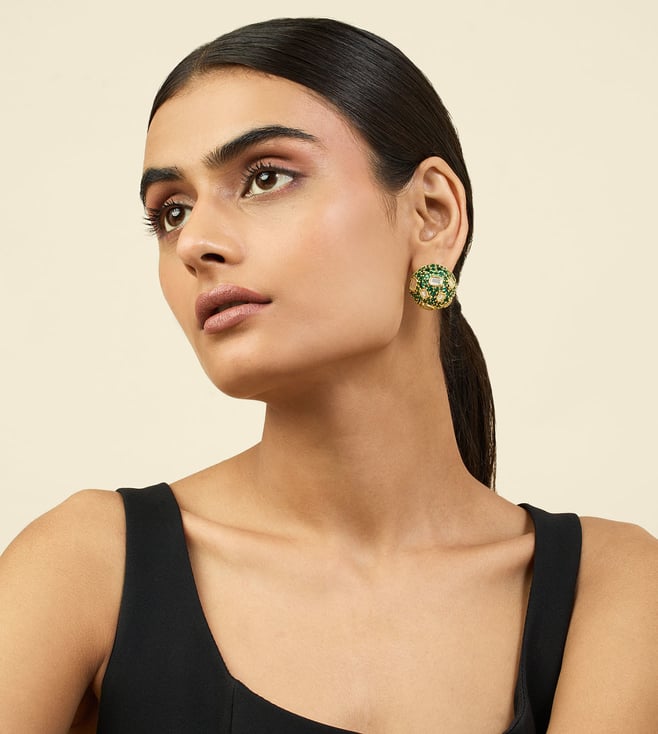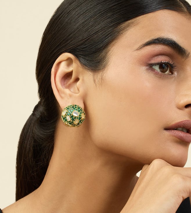 Isharya Green 18K Gold Plated Stud Earrings