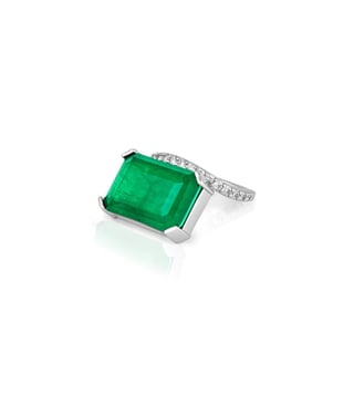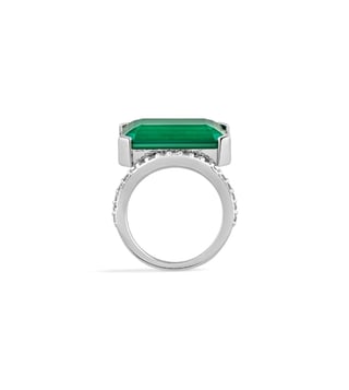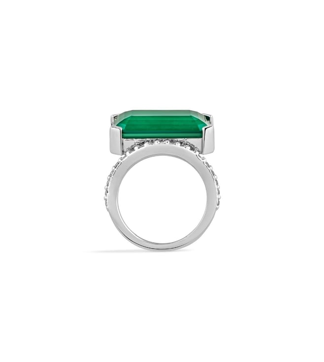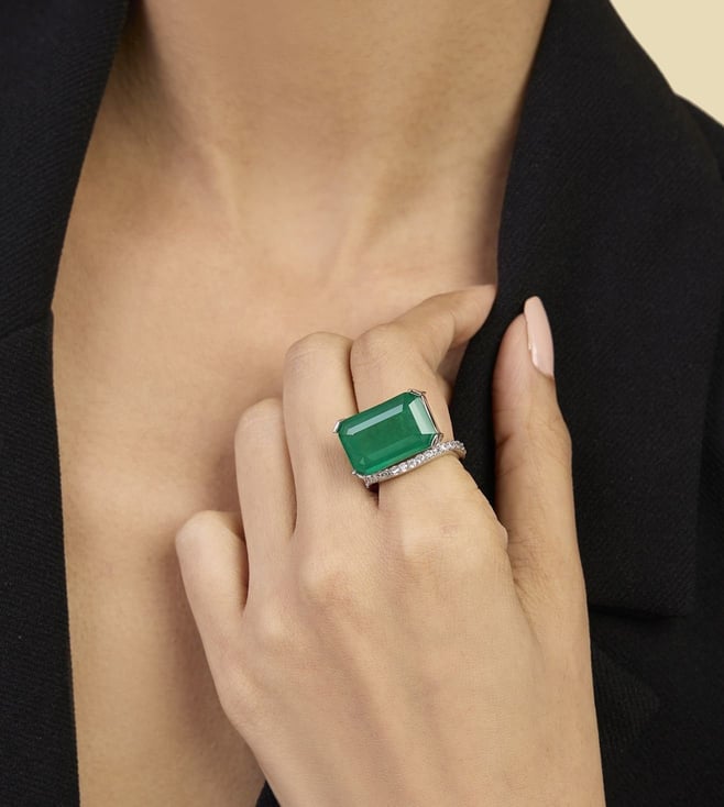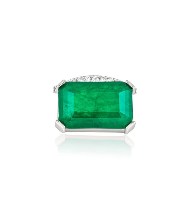 Isharya Green High 2.0 Radiant Emerald Cut Cocktail Ring In Rhodium Plating