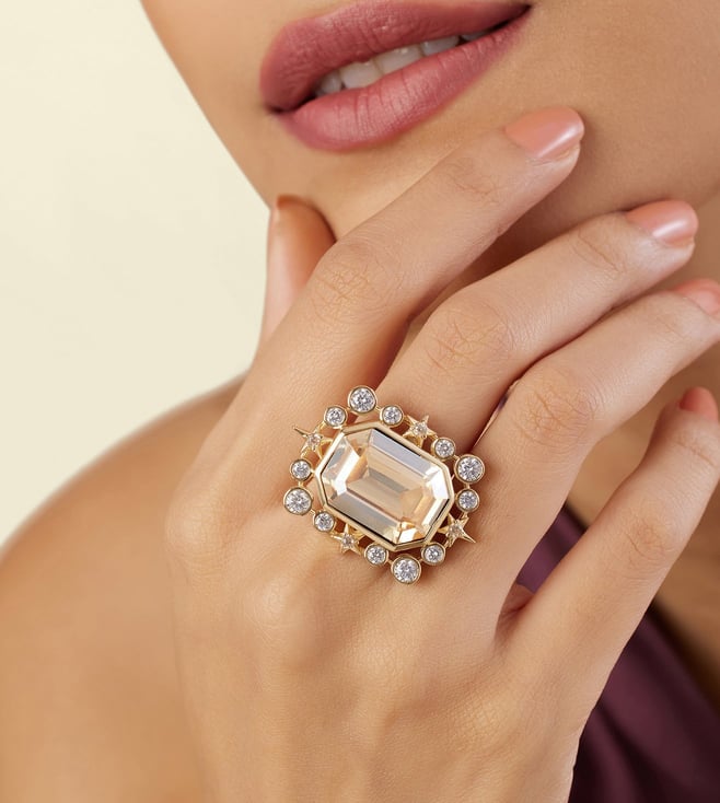 Crafted in brass with 18k gold plating, this multicolour ring dazzles with crystal zirconias. Inspired by cosmic constellations, it¿s the perfect statement piece for weddings, cocktail parties, and festive soir¿es. Hypoallergenic and unforgettable¿shop now.
