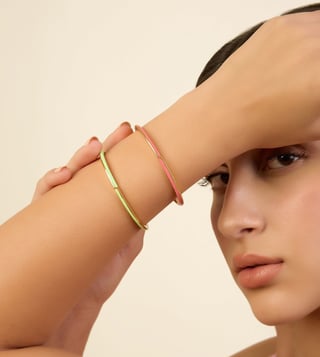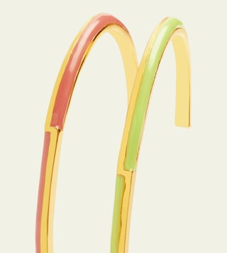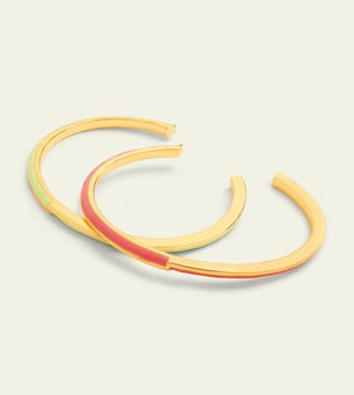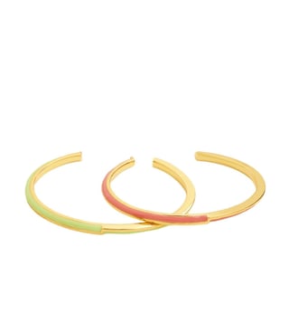 Isharya Pink & Green Stackable Cuffs In 18kt Gold Plated