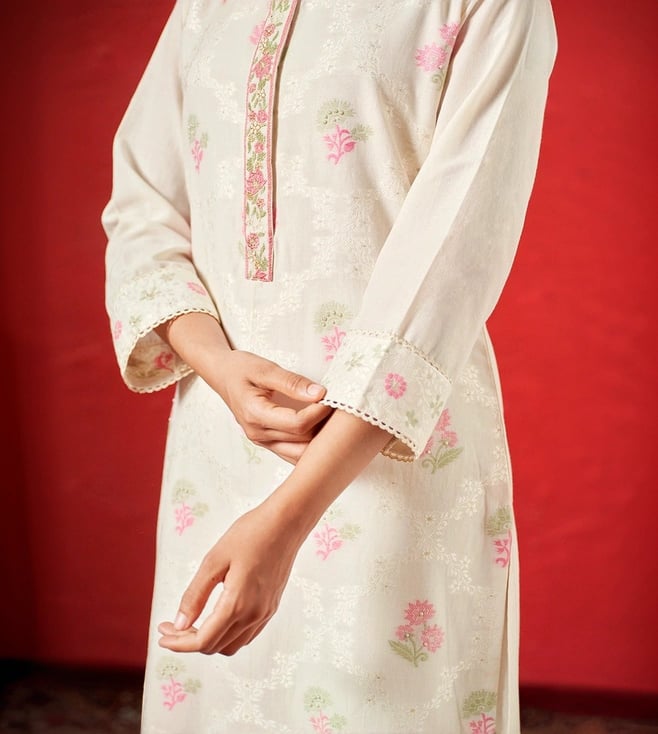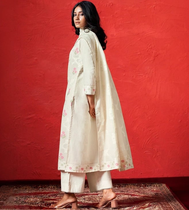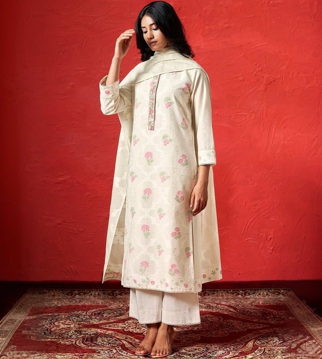 Ganga FashionsIvory Woven Cotton Kurta with Salwar Dupatta