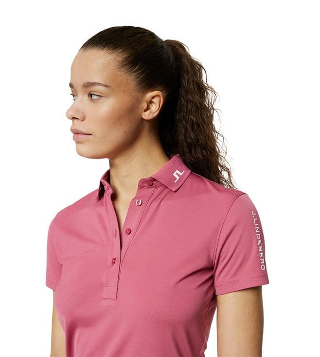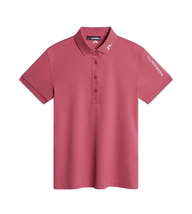 J.Lindeberg Rose Wine Polyester Solid Regular Fit Short Sleeves Tour Tech Golf Polo