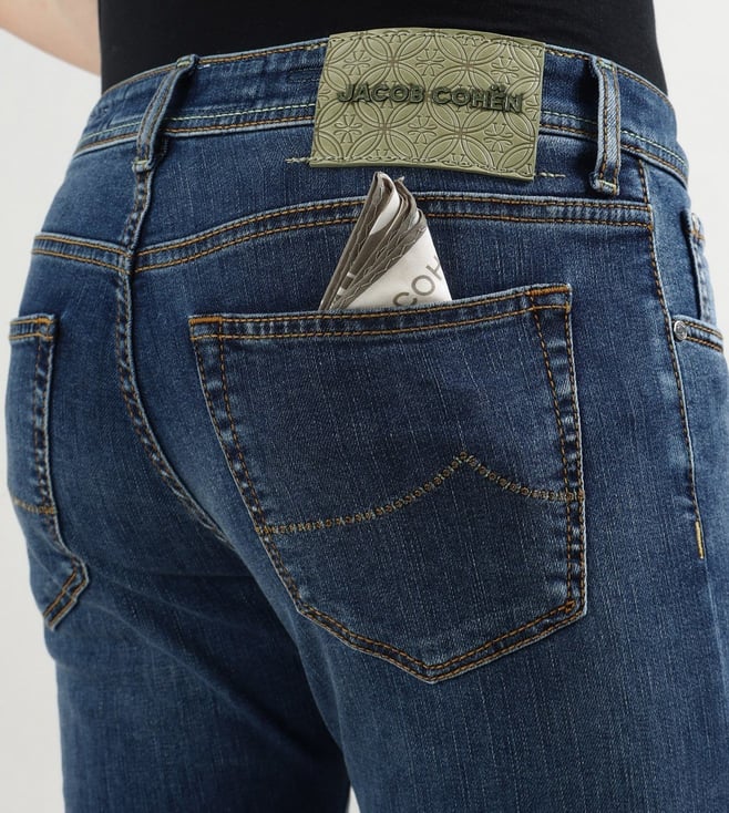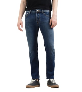 Jacob Cohen Blue Solid Regular Fit Jeans