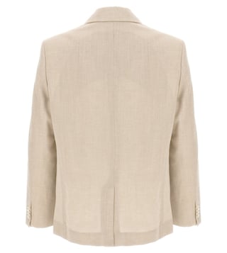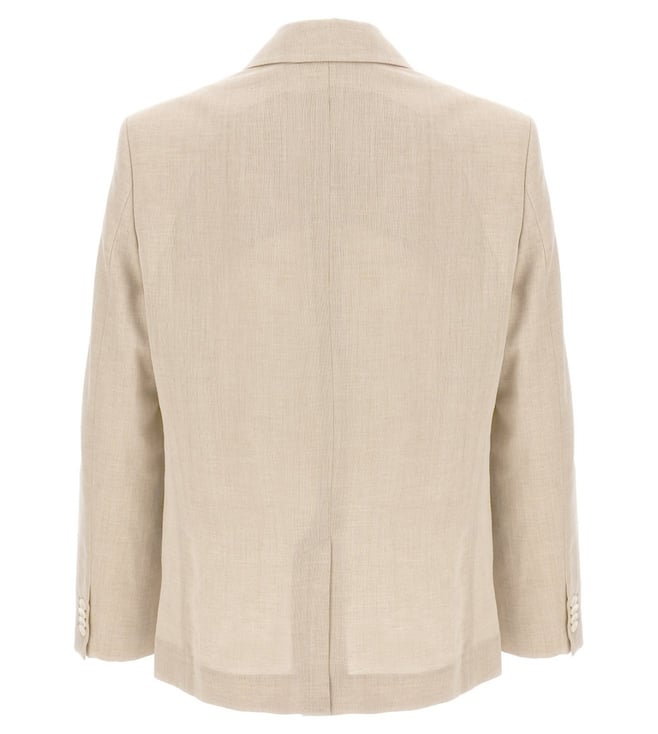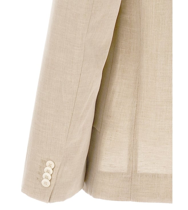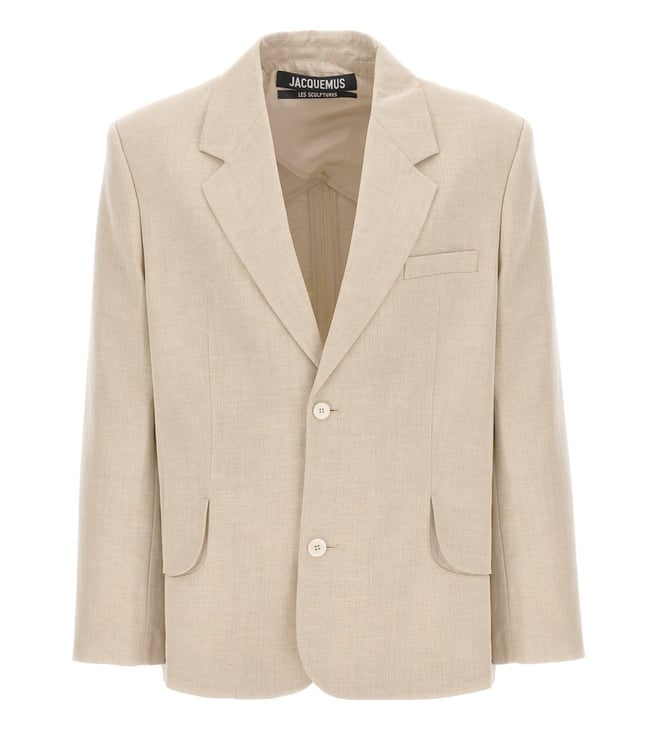 Elevate your style with the Jacquemus Beige Blazer. Singlebreasted 'la veste titolo' linen and wool blazer with button closure, pockets, shoulders, long sleeves, back split. True to size fit. Products purchased from Darveys are supported exclusively by the warranty/exchange policies of Darveys and its partner boutiques. Brand owners and their channel partners are not responsible for exchange/warranty services for items purchased through Darveys.