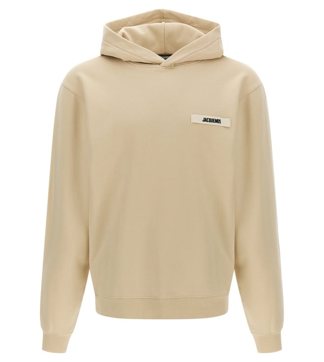 Elevate your style with the Jacquemus Beige Hoodie. Le hoodie gros grain' cotton sweatshirt, hood, front detail with logo patch, long sleeves with cuffs. True to size fit. Products purchased from Darveys are supported exclusively by the warranty/exchange policies of Darveys and its partner boutiques. Brand owners and their channel partners are not responsible for exchange/warranty services for items purchased through Darveys.