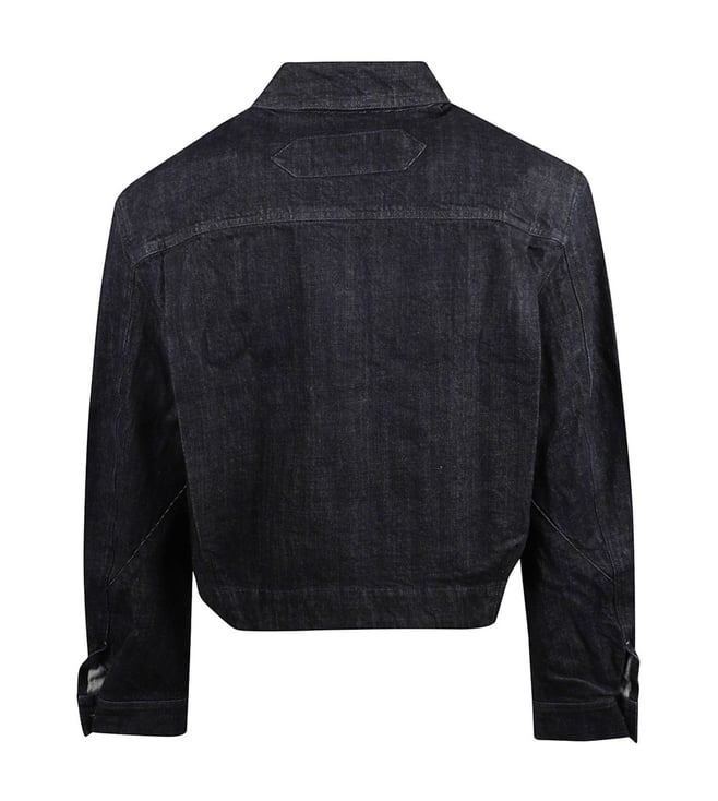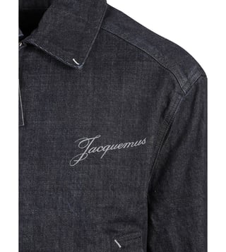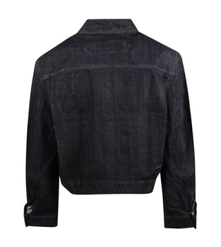 Laser logo print, front zip closure, workwear collar, pockets, long cuffed sleeves, tonal patch on the back.