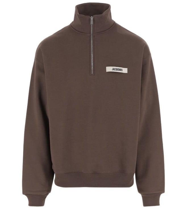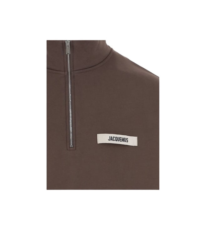 Elevate your style with the Jacquemus Dark Brown Grosgrain Logo Zipped Relaxed Fit Sweatshirt. Grosgrain logo zipped sweatshirt relaxed fit cotton fleece zipped stand collar long sleeves ribbed cuffs and hem embroidered grosgrain logo on the chest. Products purchased from Darveys are supported exclusively by the warranty/exchange policies of Darveys and its partner boutiques. Brand owners and their channel partners are not responsible for exchange/warranty services for items purchased through Darveys.