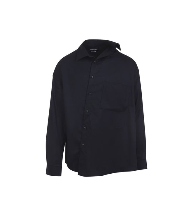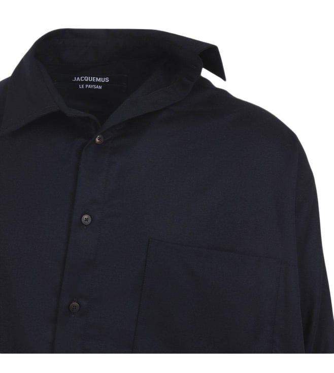 Asymmetric cut, pointed collar, off-center button placket, embroidered logo on the chest. Back yoke, buttons and geometric cuffs. Composition: 100% wool. Products purchased from Darveys are supported exclusively by the warranty/exchange policies of Darveys and its partner boutiques. Brand owners and their channel partners are not responsible for exchange/warranty services for items purchased through Darveys.