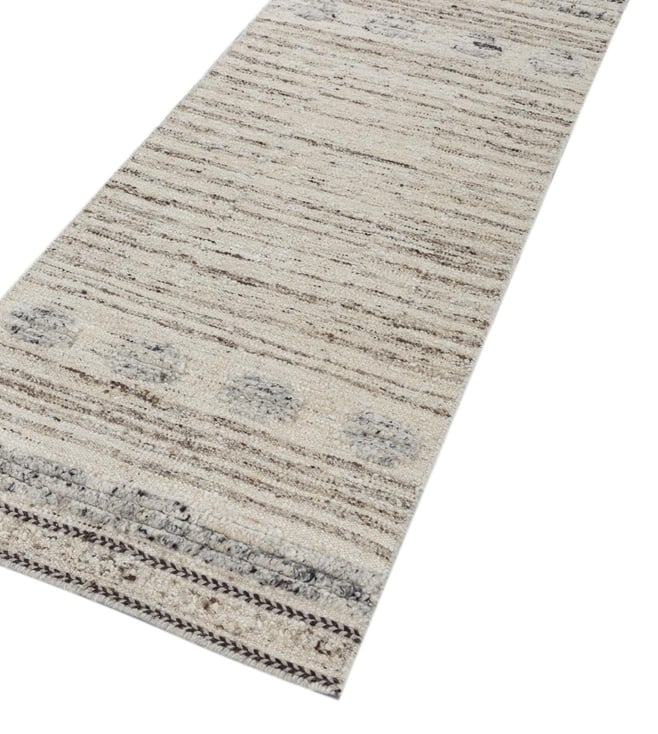Jaipur Rugs 3'4X9 Feet Ivory Wool Runner Geometric and Stripes Rug