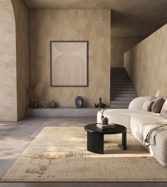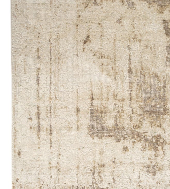 This 4x6 ft hand-knotted wool and silk rug in Beige Trace embodies refined artistry with its subtle abstract design. The ivory tones and delicate silk accents bring depth and texture, making it a sophisticated choice for both modern and transitional interiors. Its wool-silk-cotton blend delivers comfort underfoot while ensuring lasting durability. Perfect for bedrooms, studies, or intimate seating areas, this piece balances craftsmanship with artistry. From the Entropy collection, it represents a harmonious fusion of traditional hand-knotting and contemporary abstract design.