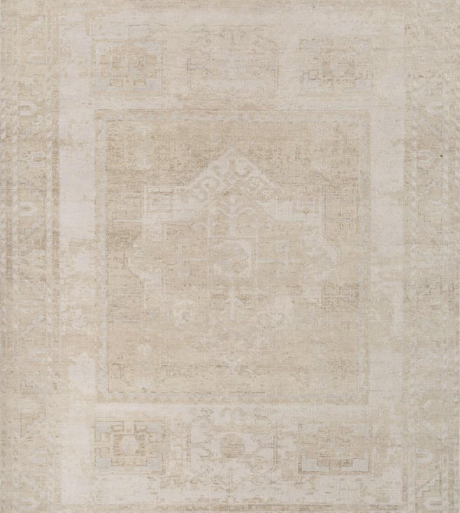 This 6x9 ft hand-knotted rug from the Thyme collection features a Moroccan-inspired tribal pattern in soothing linen hues. Crafted entirely from premium wool, it offers a plush underfoot feel and lasting durability. Perfect for infusing character into bedrooms or living spaces, it balances heritage artistry with contemporary charm. A timeless addition, it celebrates global design while remaining versatile for modern homes.